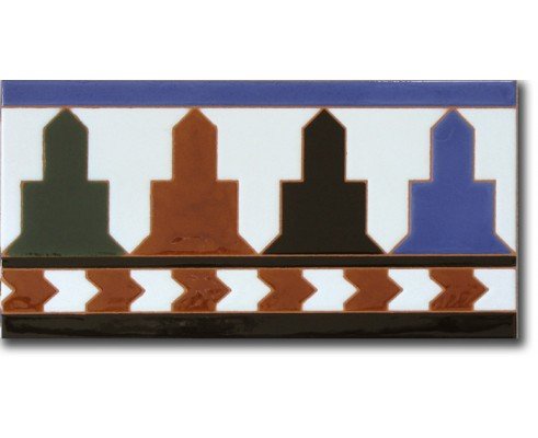 Azulejo árabe pintado a mano en “cuerda seca”, de 14×28 cm. con dibujo de remate referencia R520