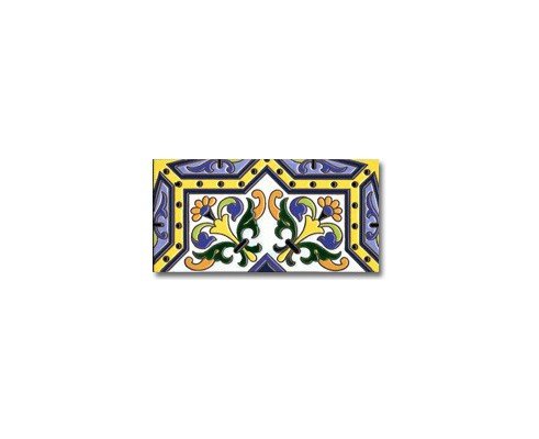 Azulejo sevillano pintado a mano en “cuerda seca”, de 14×28 cm. con dibujo de fondo referencia F185