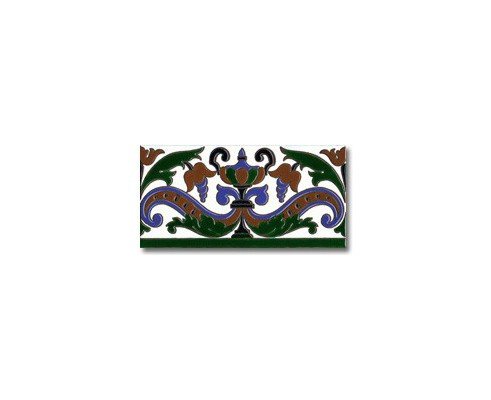 Azulejo sevillano pintado a mano en “cuerda seca”, de 14×28 cm. con dibujo de remate referencia R110