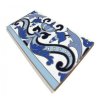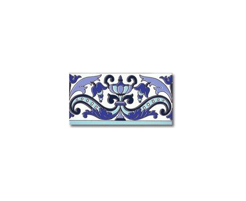 Azulejo sevillano pintado a mano en “cuerda seca”, de 14×28 cm. con dibujo de remate referencia R113