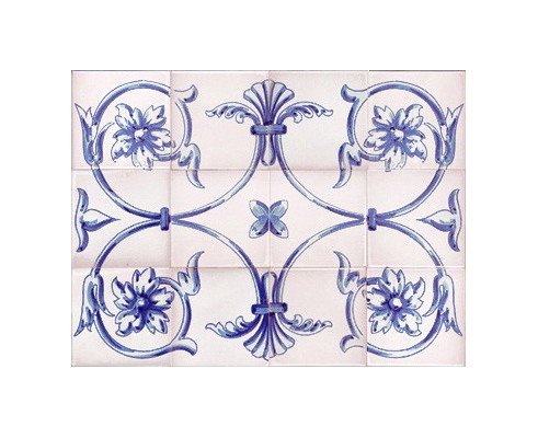 Compuesto de 12 azulejos de 15 x 15 cm. forman los decorados centrales de nuestra gama de zócalos pincelados.