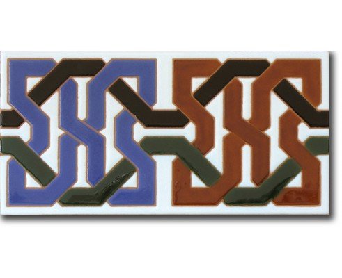 Azulejo árabe pintado a mano en “cuerda seca”, de 14×28 cm. con dibujo de cenefa referencia P510