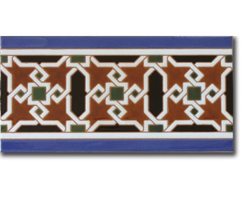 Azulejo árabe pintado a mano en “cuerda seca”, de 14×28 cm. con dibujo de cenefa referencia P520