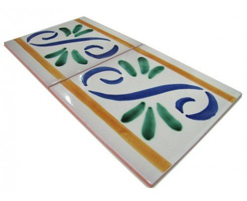 Azulejo pintado a mano usando la técnica de “sobre vidrio”, de 15×15 cm. con dibujo de cenefa referencia SV2087