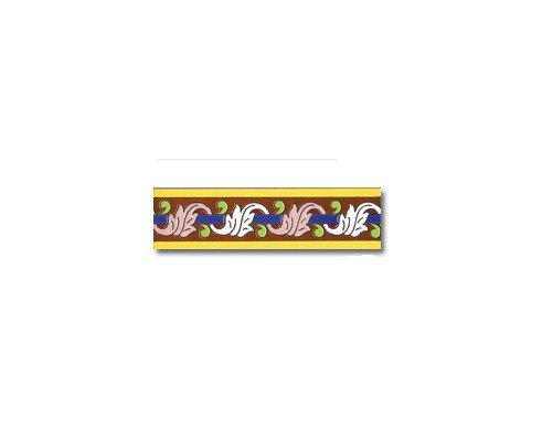 Azulejo sevillano pintado a mano en “cuerda seca”, de 7×28 cm. Conocido también como “calabrote”. Dibujo de cenefa referencia C112