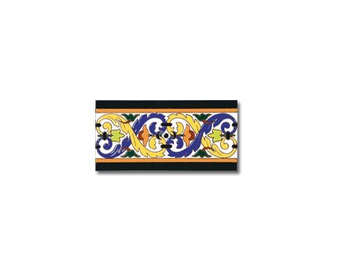 Azulejo sevillano pintado a mano en “cuerda seca”, de 14×28 cm. con dibujo de cenefa referencia P111