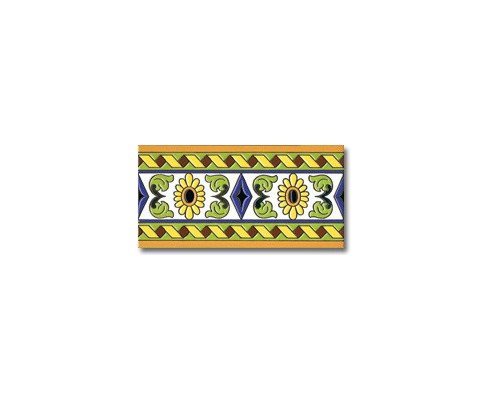 Azulejo sevillano pintado a mano en “cuerda seca”, de 14×28 cm. con dibujo de cenefa referencia P124