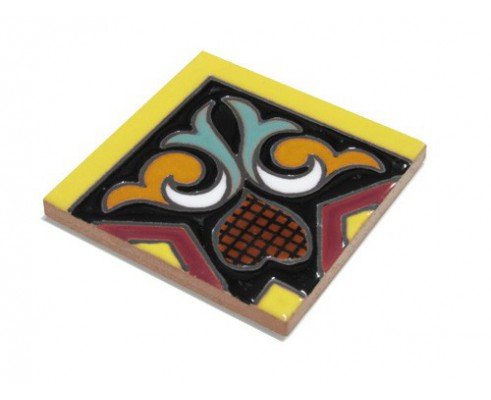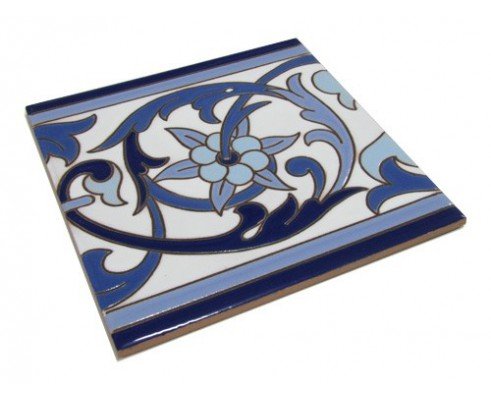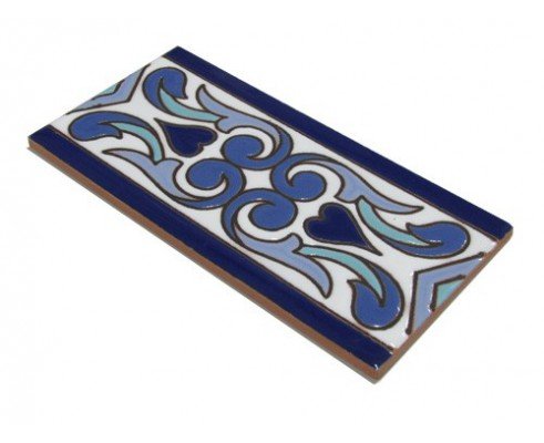 Cenefa de cerámica pintada a mano en cuerda seca de 7,5 x 15 cm. estilo sevillano. Modelo CN43