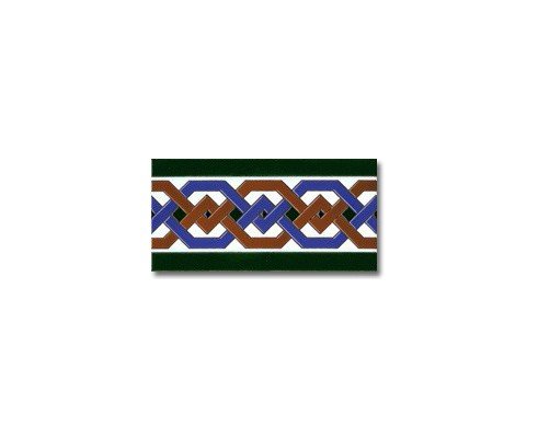 Azulejo árabe pintado a mano en “cuerda seca”, de 14×28 cm. con dibujo de cenefa referencia P200