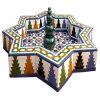 De estilo Árabe, con el diseño y colorido de la ancestral cultura Andalusí, está realizada en “cuerda seca”, una técnica que permite aportar unos tonos y vistosidad únicos, y que habitualmente no se usa en este tipo de piezas dada su complejidad. En Cerámica Campos siempre hemos realizado nuestras fuentes de esta forma, y queremos conservar este proceder para el mantenimiento de la tradición de la cerámica de Triana.