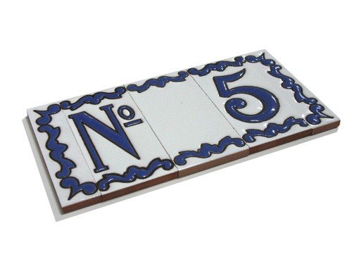 Letra de cerámica, pintada a mano en cuerda seca, de 5 x 10 cm. serie Mini Azul, ideal para numeración de viviendas o rotulación en general.
