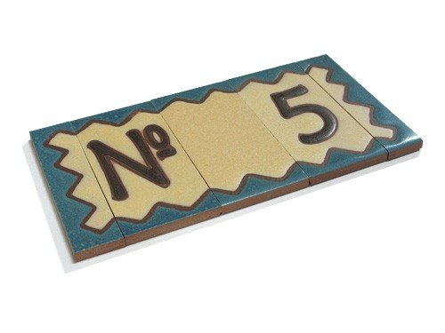 Letra o número de cerámica pintada a mano en cuerda seca, de 5 x 10 cm. en estilo rústico, para numeración de viviendas o rotulación en general.