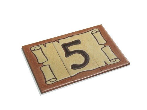 Letra o número de cerámica, pintada a mano en cuerda seca, de 7,5 x 15 cm. en estilo rústico, ideal para numeración de viviendas o rotulación en general.