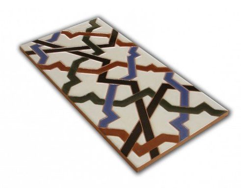 Zócalo de azulejos pintados a mano, de estilo árabe, con el diseño y colorido de los tradicionales zócalos de la arquitectura Mudéjar.